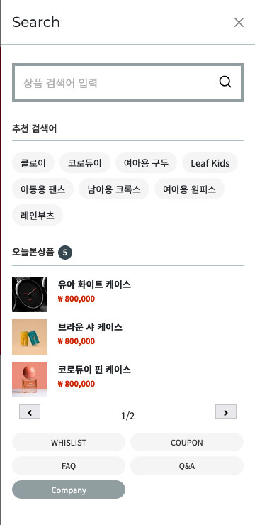 - · 로그인 아이콘 클릭시 창으로 오늘본상품, 장바구니, 위시리스트를 확인 할 수 있습니다.