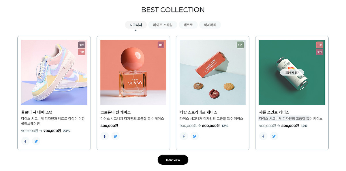 - · 상품유형 타입 : 히트(1), 추천(2), 신상(3), 인기(4), 할인(5)