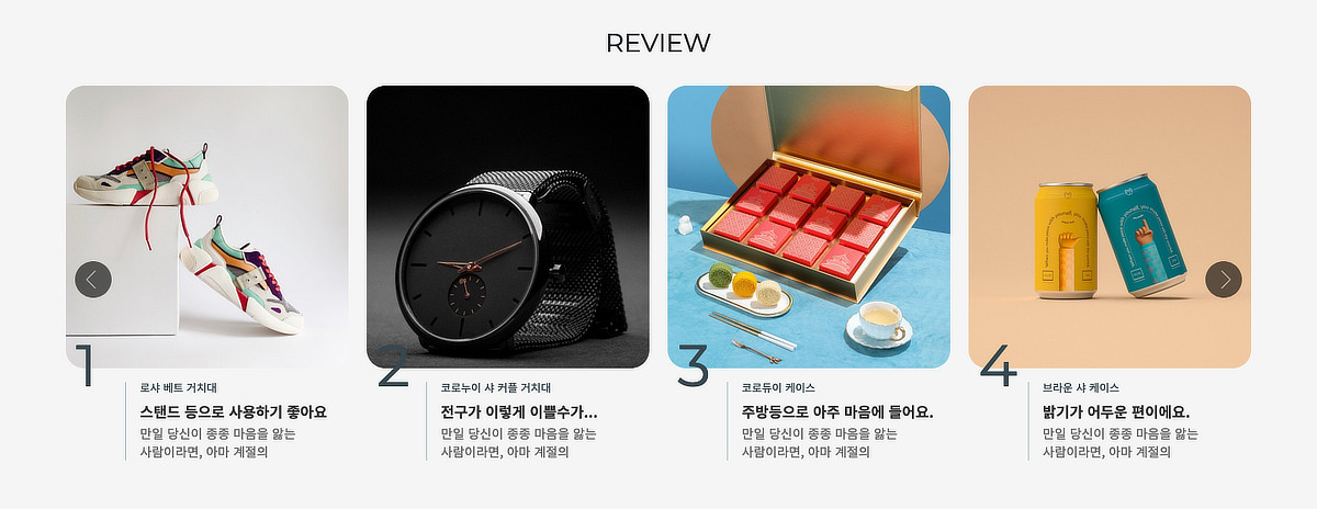 - · 아이템 4개에 맞춰 디자인 되었습니다.