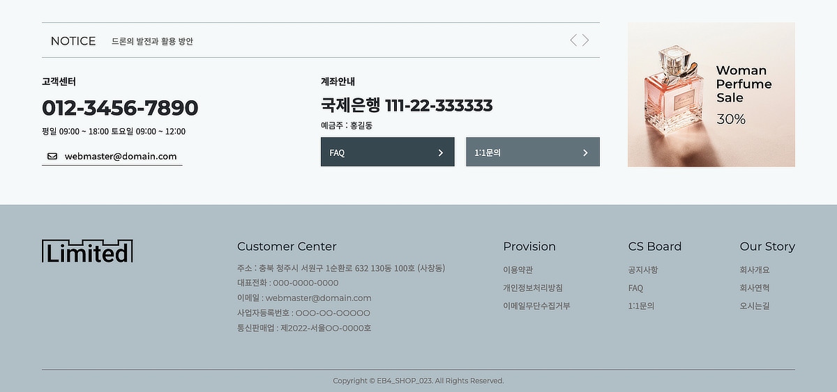- · 푸터메뉴, 입금정보, 카피라이트는 해당 파일에서 직접 수정합니다.