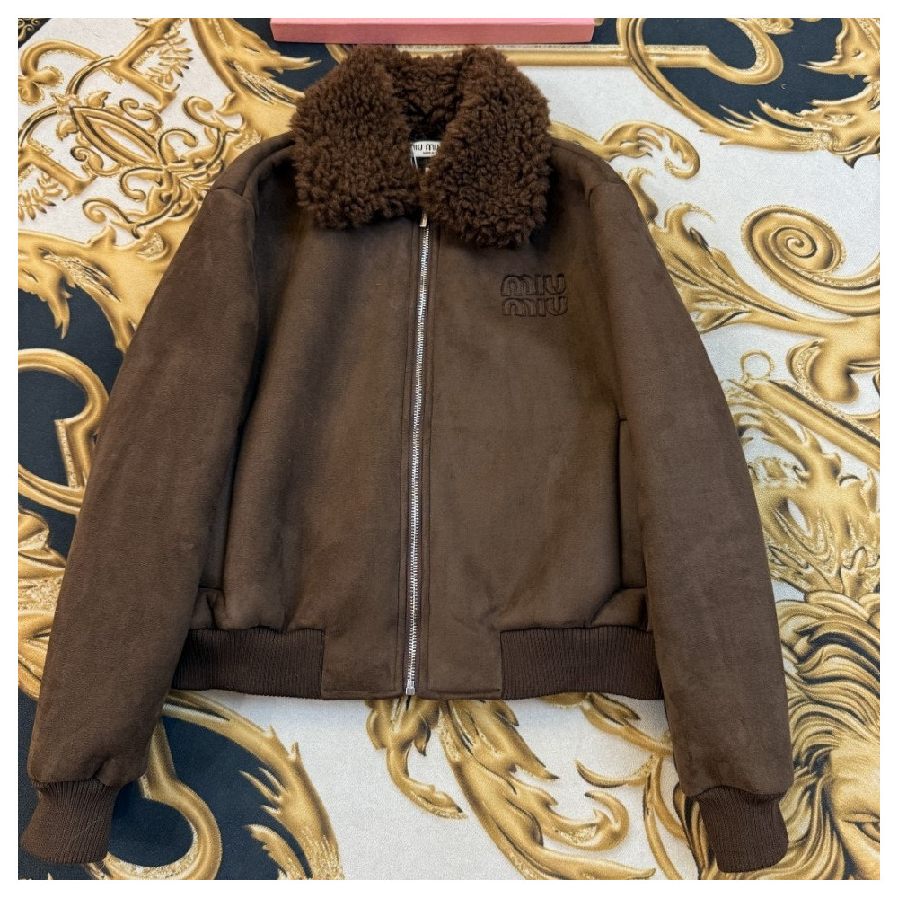 #미우미우 [ Miu ] 수입 로고패치 시어링 카라 집업자켓-코코아 컬러추가-입고💢 #여성상의 #집업자켓