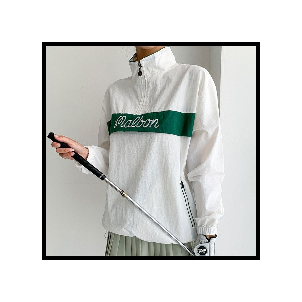 밑단에 스트링이 있는 제품으로 제작된 여성 골프집업입니다